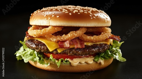 Large Bacon Cheeseburger with Fresh Lettuce and Tomato