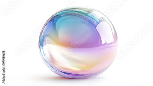 large bubble with soft reflections, vibrant iridescent tones, close-up shot, realistic 3D style, isolated on white background