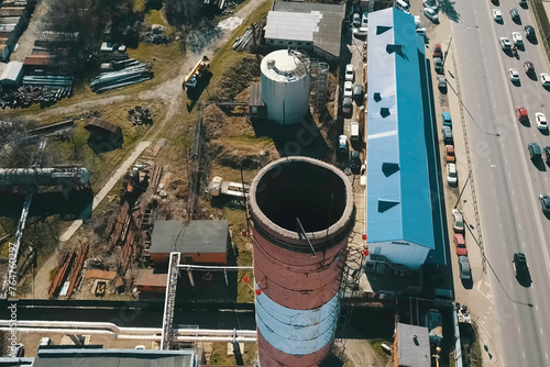 Large chimney of plant. Factory chimney and heat pipe.