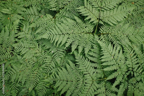 Large green bush fern in the forest. Background from the leaves of plants