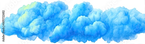Large, light-blue cloud-like formations on a white background