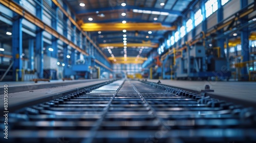 Laser cutting metal with CNC machinery, emphasizing the high-tech process (selective focus) theme, production line ethereal Multilayer industrial plant
