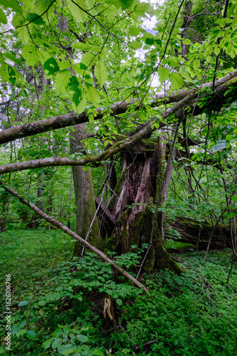 Late springtime deciduous forest with fresh green rich trees around
