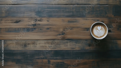 Latte Art on Rustic Wood Table Tranquil Coffee Scene Drink Presentation Elegant Foam Design
