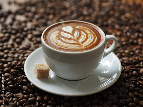 Latte Barista with roasted coffee beans, perfect for morning cafe or breakfast