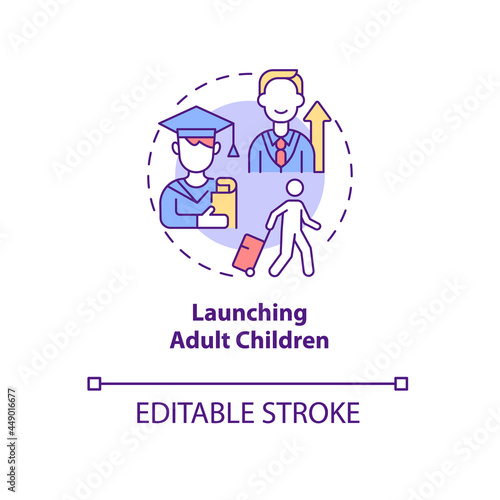 Launching adult children concept icon. Family life cycle. Offspring period of transition abstract idea thin line illustration. Vector isolated outline color drawing. Editable stroke