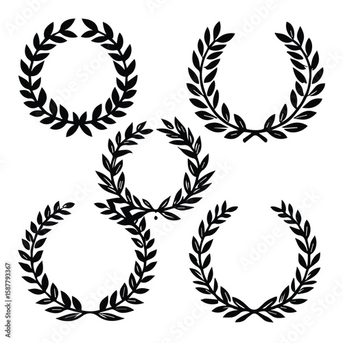 Laurel wreaths in various sizes. Ornamental laurel wreaths in a decorative design.