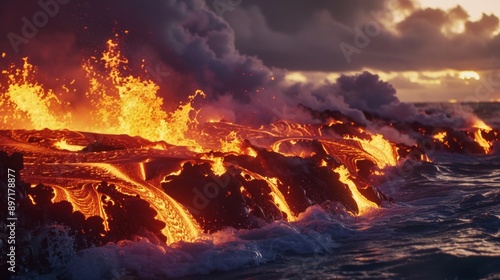Lava Flowing into the Ocean.