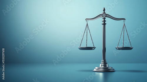 Law symbol vector with pillar, balance scale, clean blue monochrome background