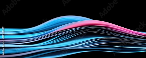 Layer abstract background concept. Vibrant abstract waves of blue and pink against a black background for modern design.