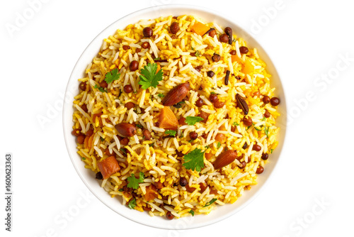 Layered Bhuna Khichuri Scoop with Visible Lentils and Whole Masala, Transparent Background