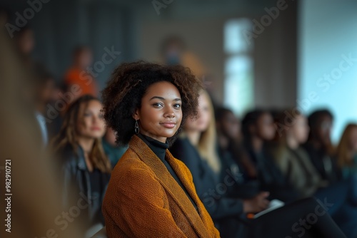 Leader engages audience during a vibrant diversity presentation at a community forum