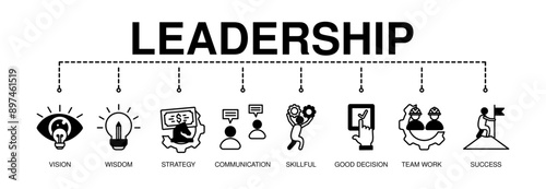 Leadership banner web icon for business, vision, wisdom, skillful, decision, teamwork and success. Minimal vector infographic