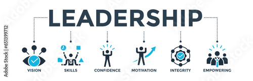 Leadership banner web icon vector illustration concept with icon of vision, skills, confidence, motivation, integrity, empowering