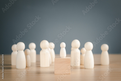 Leadership or human resource management HRM concept, wooden puppet on striking cube Show the leadership of the new generation, building a strong teamwork to make the business successful