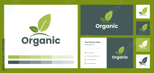 Leaf logo, Organic bio natural concept with modern style concept and business card design template