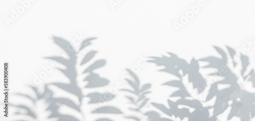 Leaf shadow and light on wall background. Nature tropical leaves tree branch plant shade sunlight on white wall for wallpaper, shadow overlay effect foliage mockup, graphic layout, wallpaper, design