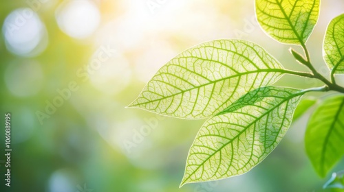 Leaf veins with natural color, intricate detail, subtle background blur, warm lighting, lush environment