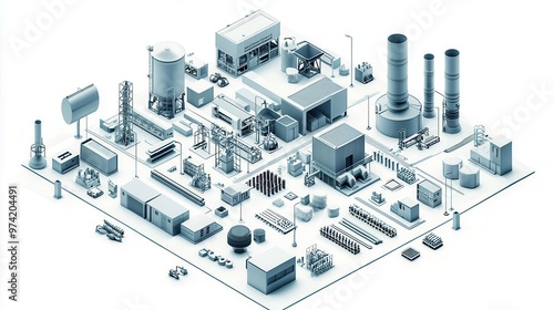 Lean floor layout design with production efficiency and automation elements isolated on a white background
