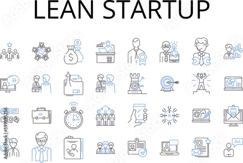 Lean startup line icons collection. Agile development, Scrum methodology, Minimum viable product, Customer discovery, Rapid iteration, Growth hacking, Bootstrapping vector and linear illustration
