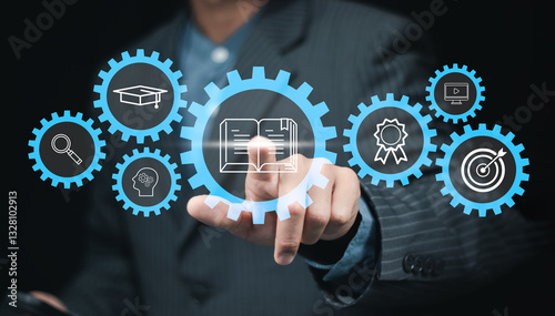 Learn to train in front of the computer. Internet e-learning lessons and online webinars People attending online lessons on digital screens Internet Technology Education Features