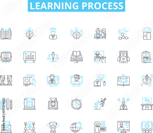 Learning process linear icons set. Acquisition, Comprehension, Memory, Analysis, Synthesis, Understanding, Development line vector and concept signs. Practice,Adaptation,Conceptualization outline