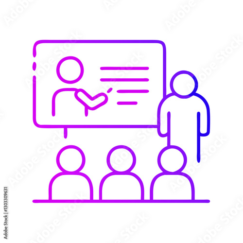 lecturer speaks to the audience, presenting a slideshow on the screen during a conference, educational masterclass, or coaching session.