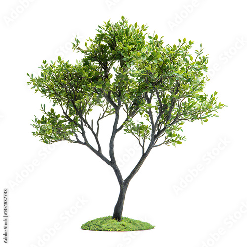 LED Lit Artificial Tree with Green Leaves Isolated on Transparent Background