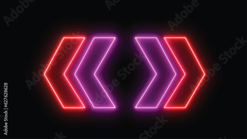 Left and right glowing red and purple neon direction at night. Lighting sparrow sign. Flashing direction indicators.