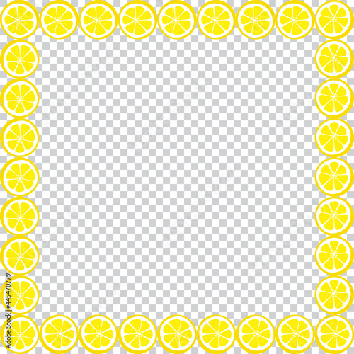 Lemon border isolated on transparent background. Juicy template. Vitamin art. Vector illustration.