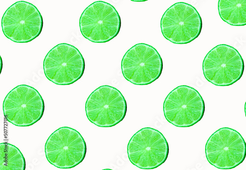 Lemon pattern (Citrus aurantifolia Swingle), white background and copy space.