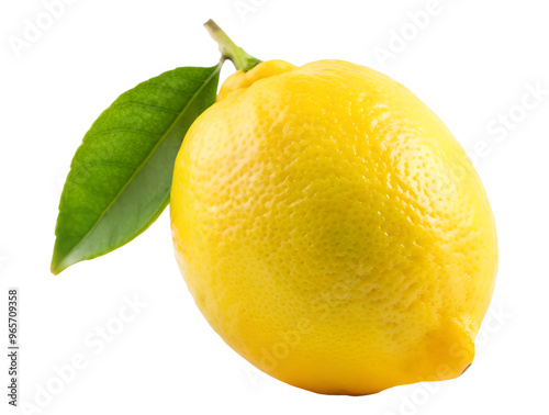 Lemon with a leaf on an isolated background, which is easy to use in any decoration