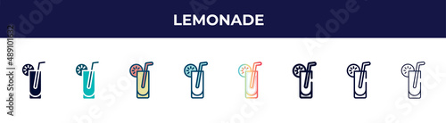 lemonade icon in 8 styles. line, filled, glyph, thin outline, colorful, stroke and gradient styles, lemonade vector sign. symbol, logo illustration. different style icons set.