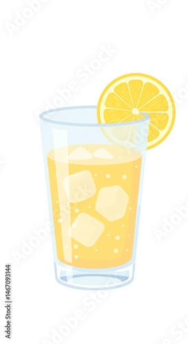 Lemonade with ice cubes flat illustration on white