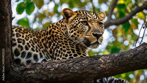 Leopard on a tree in the jungle.