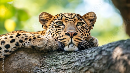 Leopard Resting on a Branch with a Thoughtful Gaze