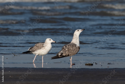 Lesser black-backed gull (Larus fuscus), a large gull, observed at Akshi Beach in Alibag, Maharashtra, India