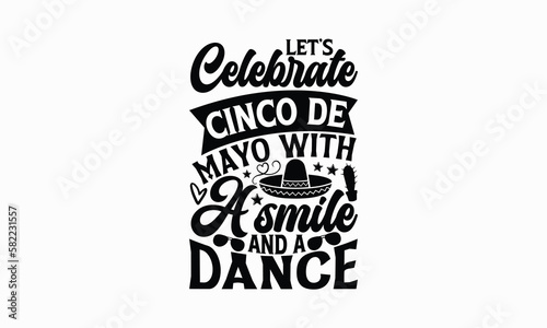 Let’s celebrate Cinco de Mayo with a smile and a dance - Cinco de Mayo T-Shirt Design, typography vector, svg files for Cutting, bag, cups, card, prints and posters.