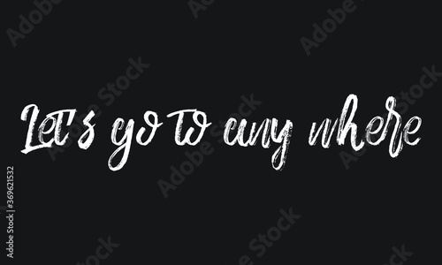 Let’s go to any where Chalk white text lettering retro typography and Calligraphy phrase isolated on the Black background
