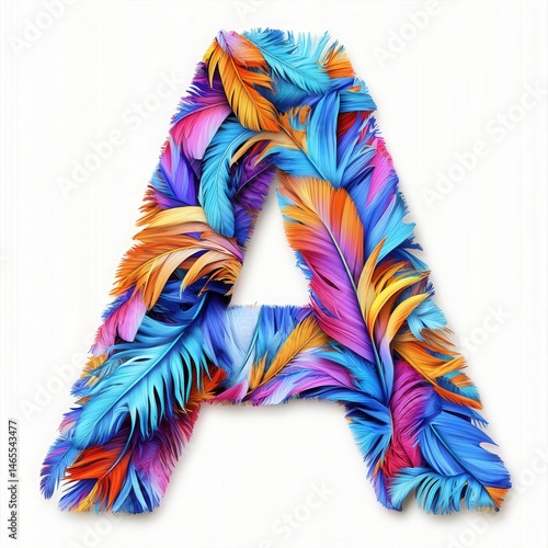 Letter a formed with vibrant colorful feathers art isolated on a white background