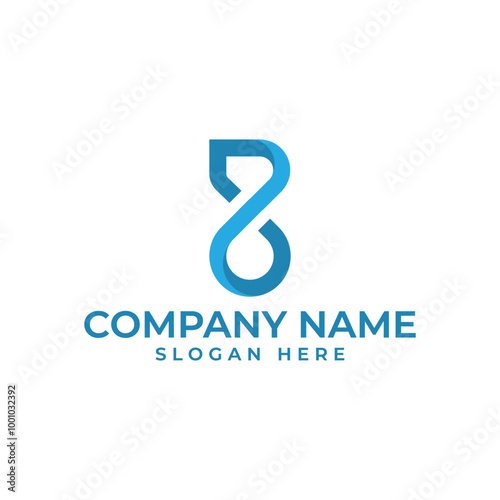 letter B in shape of infinity sign in modern and geometric style in blue and aqua color for technology logo