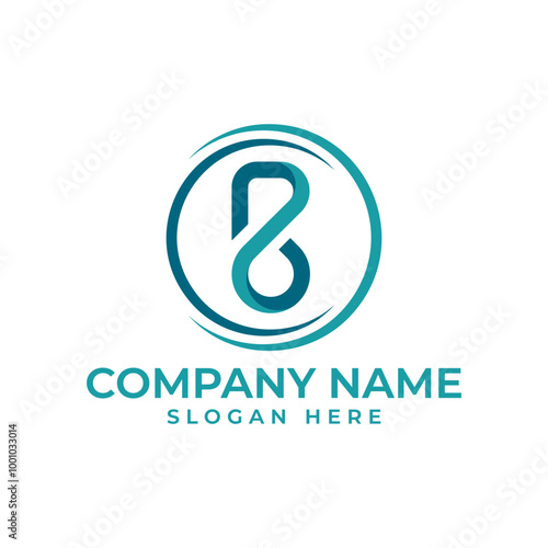 letter B in shape of infinity sign in modern and geometric style isolated by 2 swoosh forming a circle in blue and green for technology logo