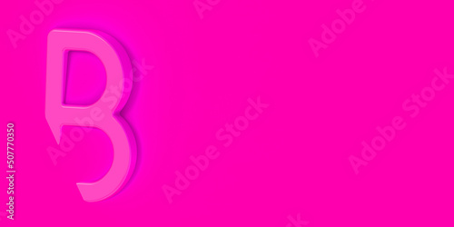 Letter B Is pink on pink background. Part of letter is immersed in background. Banner for insertion into site. Place for text cope space. Horizontal image. 3D image. 3D rendering.