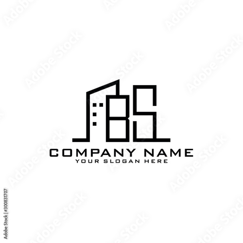 Letter BS With Building For Construction Company Logo
