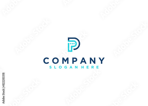 Letter DP line logo with chat ,pd, dp initial with chat icon letter logotype blue color
