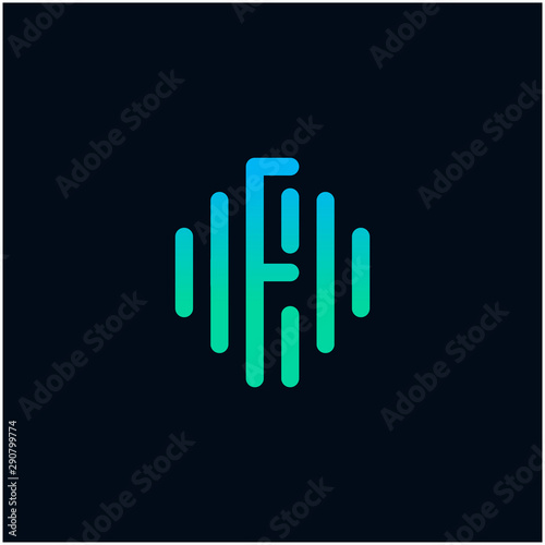letter F abstract for information technology and digital. minimalist sound music equalizer, Bass, DJ icon. audio logotype Unique and simple element. -vector