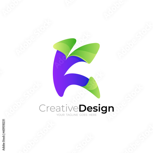 Letter K logo and 3d colorful design vector, business icons