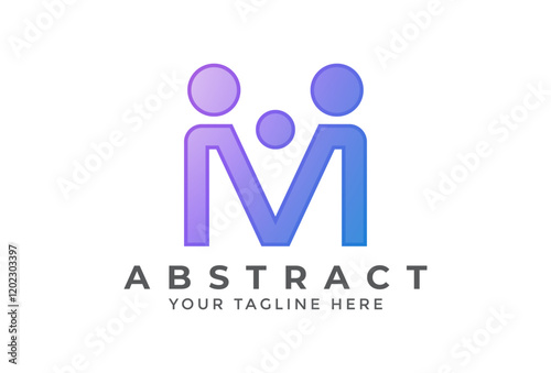 Letter M People Icon Logo Template. Simple Alphabet Logotype Concept. Happy Family Care Vector Illustration for parenting, group, community, partnership, friendship, team, union, network, connection.