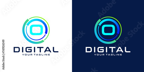 letter O logo design template technology, modern circle logo digital, technology, connection, data, media, circle line