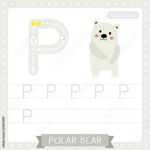 Letter P uppercase tracing practice worksheet of Standing Polar Bear